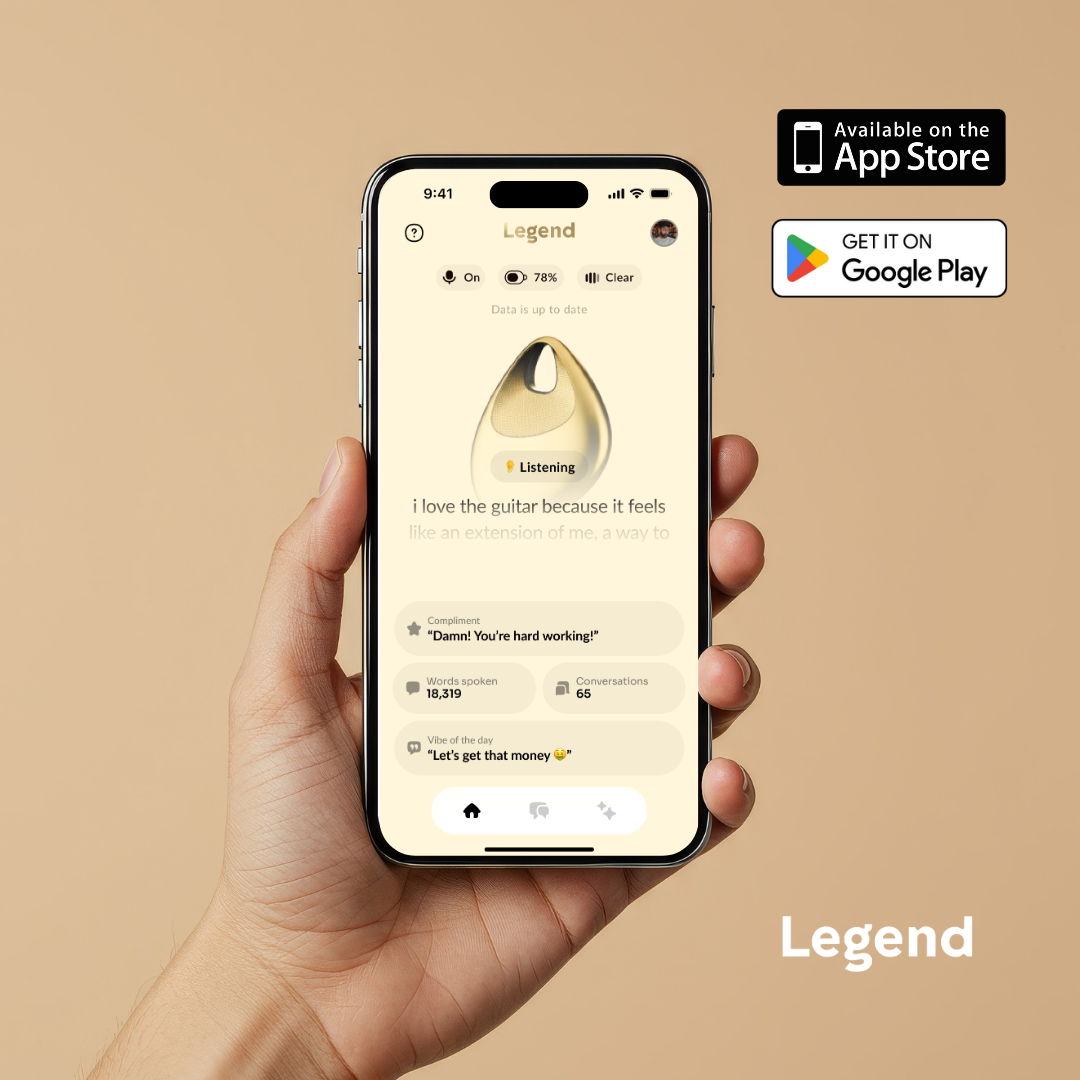 Legend doesn’t track steps or send notifications. It listens naturally, remembers what matters, and helps you stay present. It’s not another screen β€” it’s a companion for your mind.